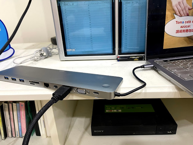 記得這個轉接頭,要買至少「一個HDMI、三個USB輸出接孔」的,線上課比較夠用,看到後面就知道了。