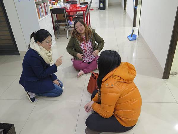 幾位年輕老師還很亢奮地聊個沒完,從在教室聊,一路收東西緩步聊到門口,依依不捨地就是不回去,索性坐在地板上聊,只差沒墊個野餐墊了。