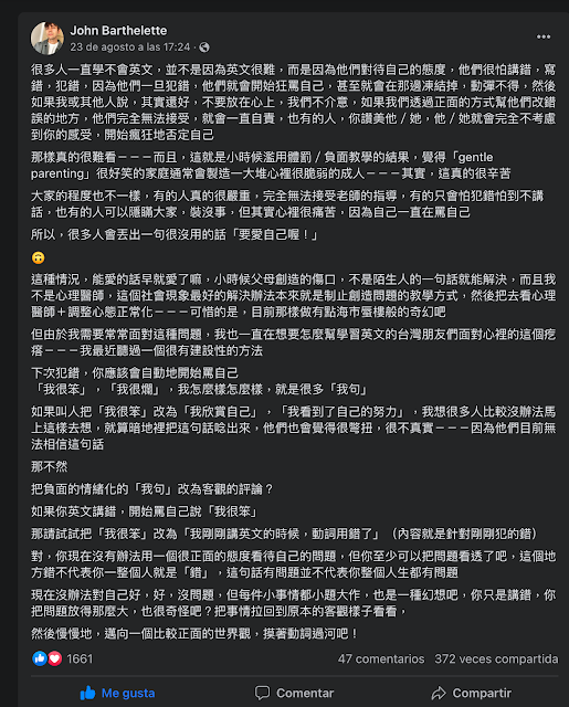 「很多人一直學不會英文,並不是因為英文很難,而是因為他們對待自己的態度。」小畢老師這一篇好文(點這裡進入小畢老師文章連結)精準點出了台灣學習者過度自謙、自卑所要付出的代價。我教台灣人西班牙文、教世界各...